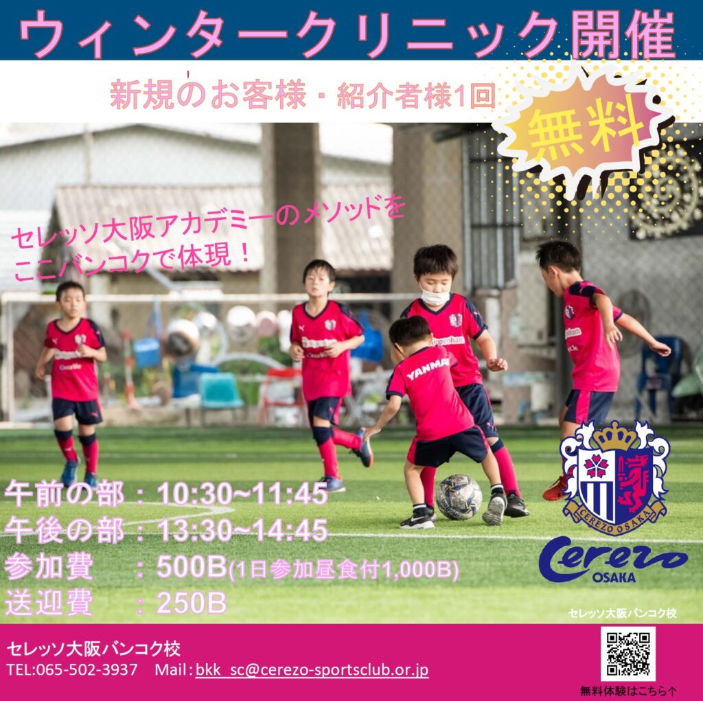 「セレッソ大阪サッカースクール2023ウィンタイクリニックinバンコク」を12月,1月に開催いたします!