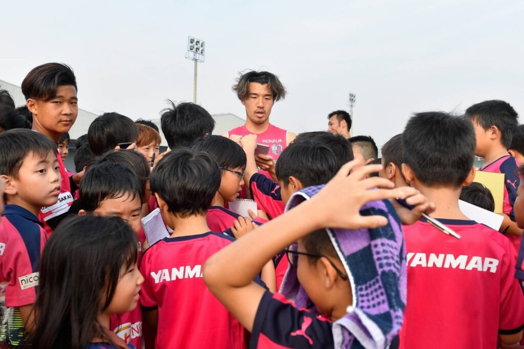 BGトレーニングセンターで、ミニゲームを行い、そのあとは選手達と写真撮影、練習見学を行いました。