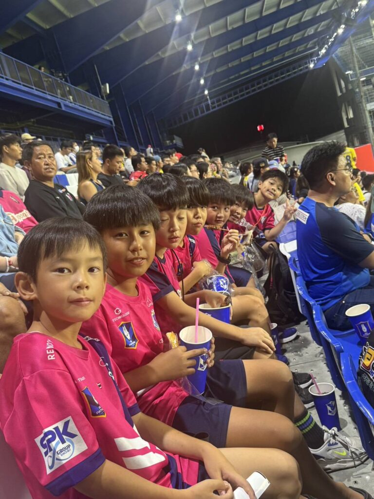 【🐰BGPU観戦ツアー🐰】 投稿日: 2025年12月14日2025年12月23日 投稿者: creerfcweb 12/14(日)、スクール生と保護者約50名で観戦ツアーを行いました。BGPU 3-0 ムアントン・ユナイテッド海外で、石井監督、野津田•土井•大瀬選手、金三津トレーナーが日本人パワーでチームを勝利に導く姿から、スクール生達は勇気をもらいました。試合終了後には、観客席近くまで来て「ありがとう!みんな」と挨拶に来てくれ、スクール生と保護者も大満足🌸